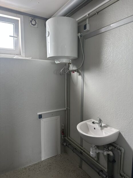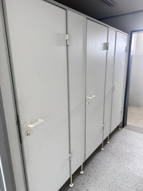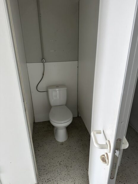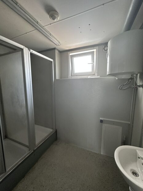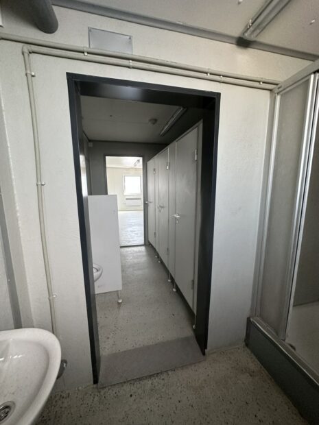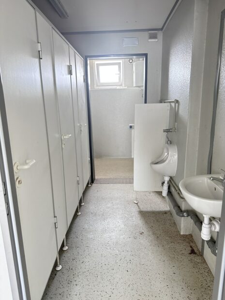 KONTENER SANITARNY + PRZESTRZEŃ NA KUCHNIE STOŁÓWKE SZATNIE 2,5×11 / 3 KABINY WC / PISUAR / 2x PRYSZNIC