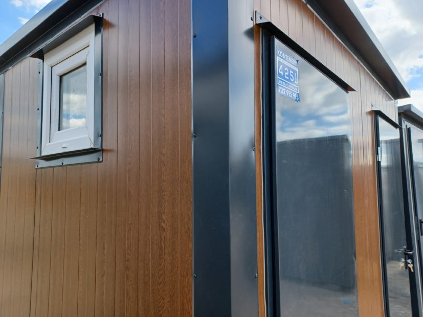 • Konstrukcja: płyta warstwowa o grubości 6 cm (ściany, dach i podłoga) – gwarantuje doskonałą izolację cieplną i akustyczną,