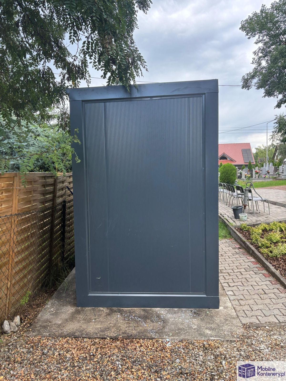Kontener został wykonany w eleganckim kolorze antracytowym i przystosowany do obsługi większej liczby użytkowników – np. podczas mszy polowych, wydarzeń parafialnych lub festynów.