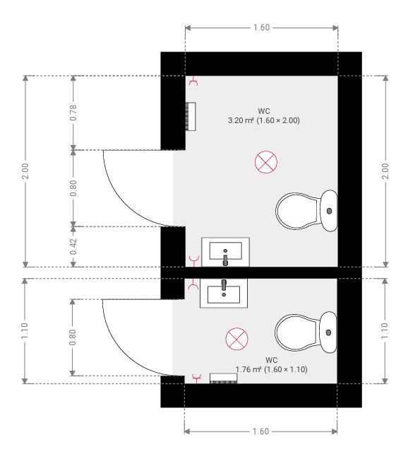 - typ: kontener sanitarny WC – 2 kabiny,