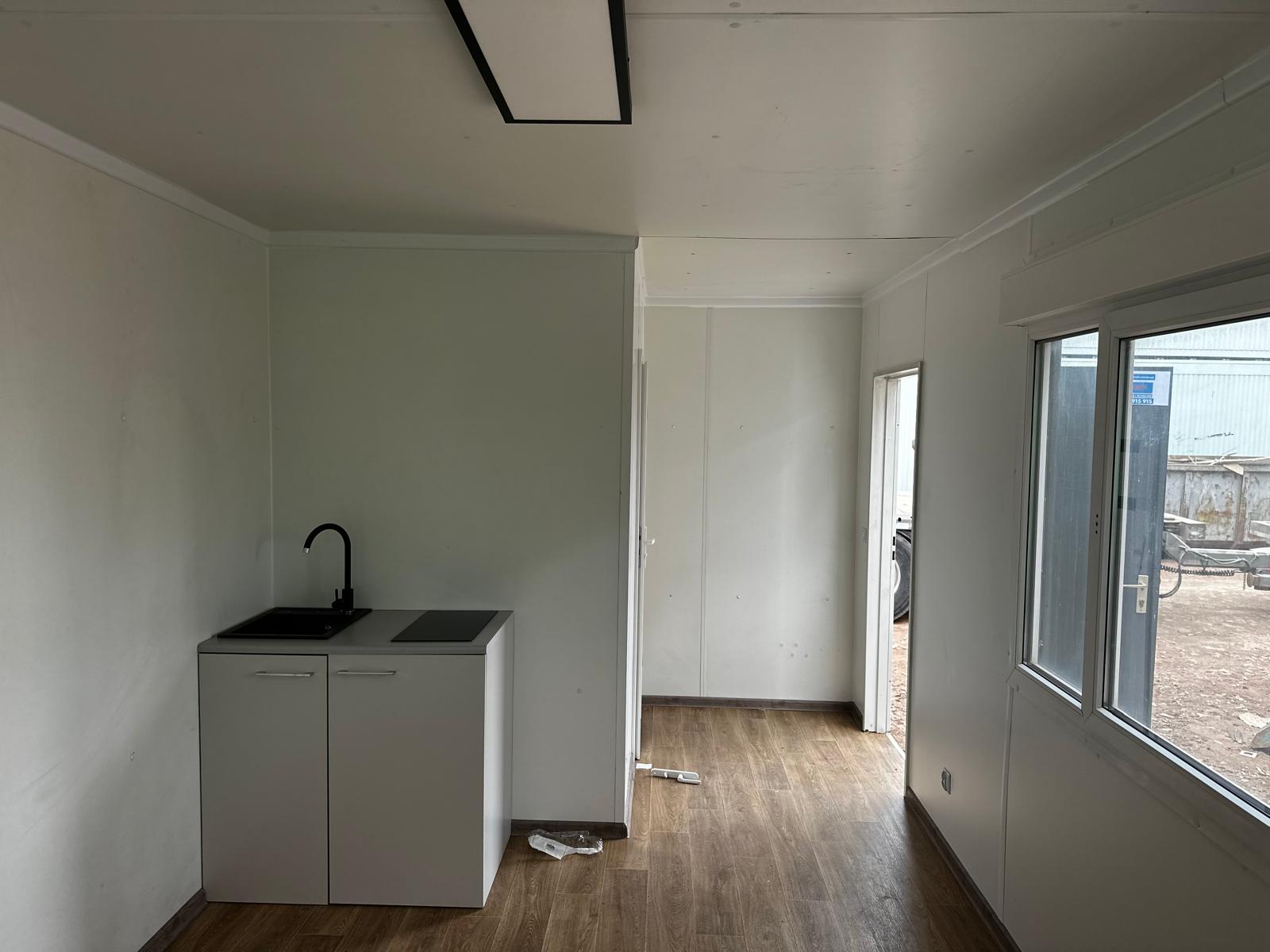 Kontener mieszkalny / biurowy o wymiarze 3 x 6 m z aneksem kuchennym, łazienką