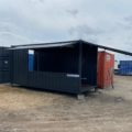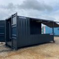 Kontener gastronomiczno-handlowy o powierzchni 15 m2 z pneumatycznie z podnoszonymi ścianami bocznymi, wersja z instalacją elektryczną.