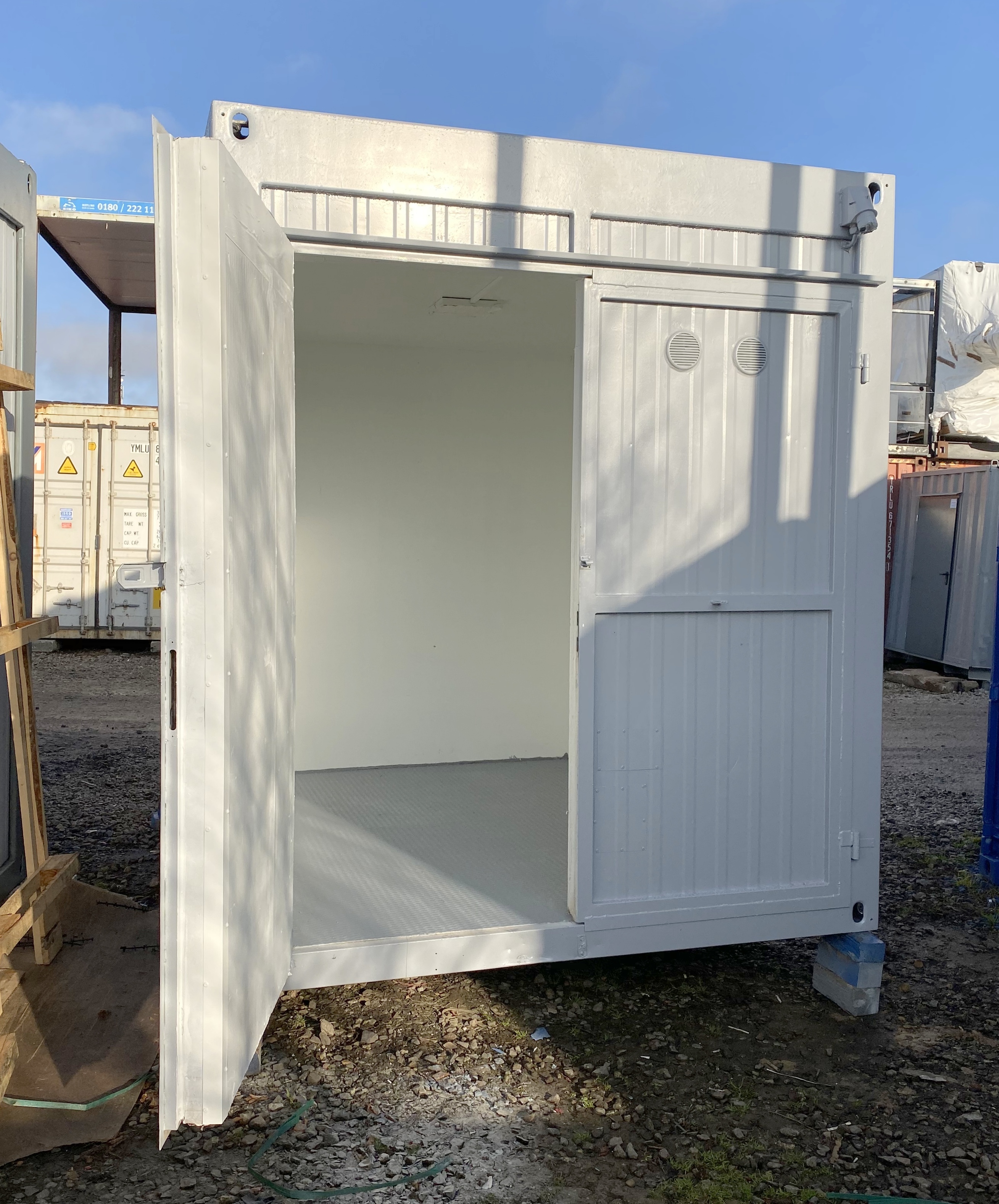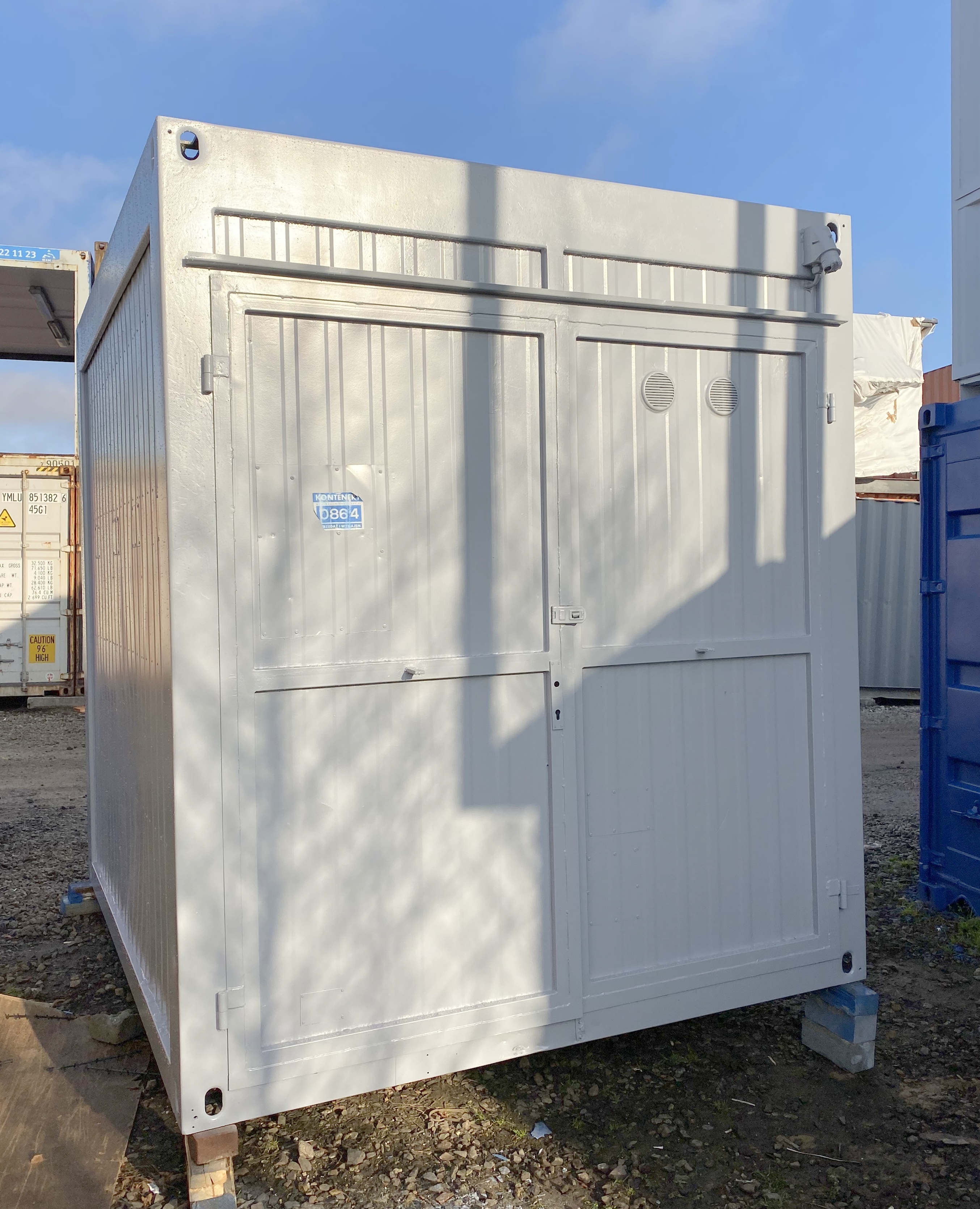 Kontener wyposażony w instalacje elektryczną, wzmacniana stalową podłogę, wentylacje.