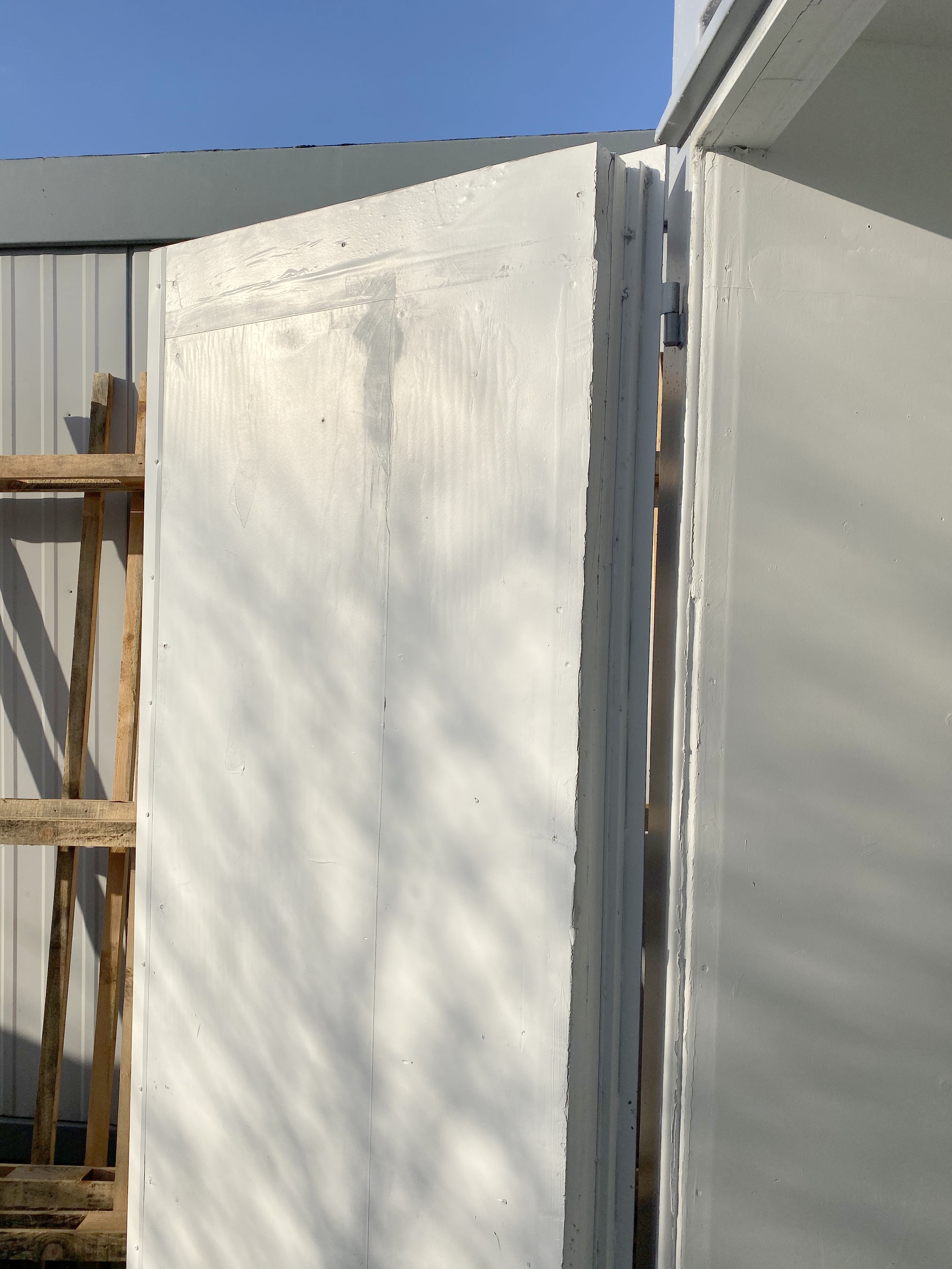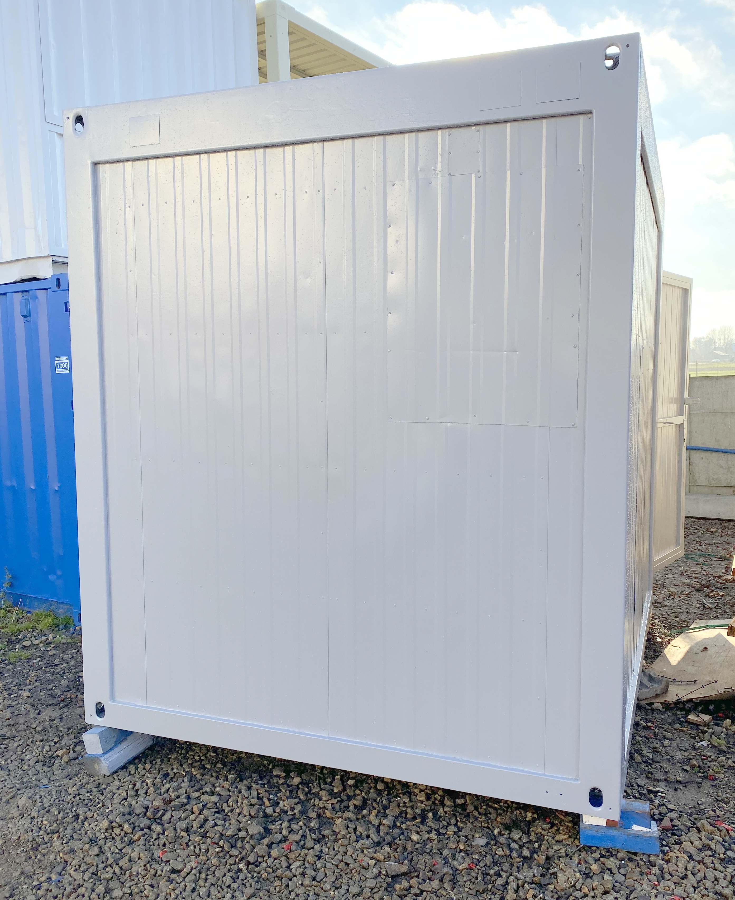 W kontenerze otwieralne jest lewe skrzydło drzwi. Prawe skrzydło zabudowane na stałe ociepleniem.